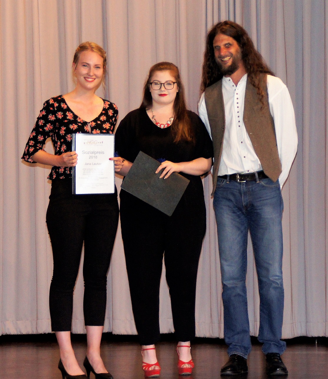 So konnten sich dieses Jahr über diese Anerkennung zwei Abiturientinnen freuen, die einen langen gemeinsamen Weg auszeichnet, der nun zur Preisverleihung durch den 1.Vorsitzenden Martin Krämer führte: Jana Lauber (li.) und Lara Pinter (Mitte).